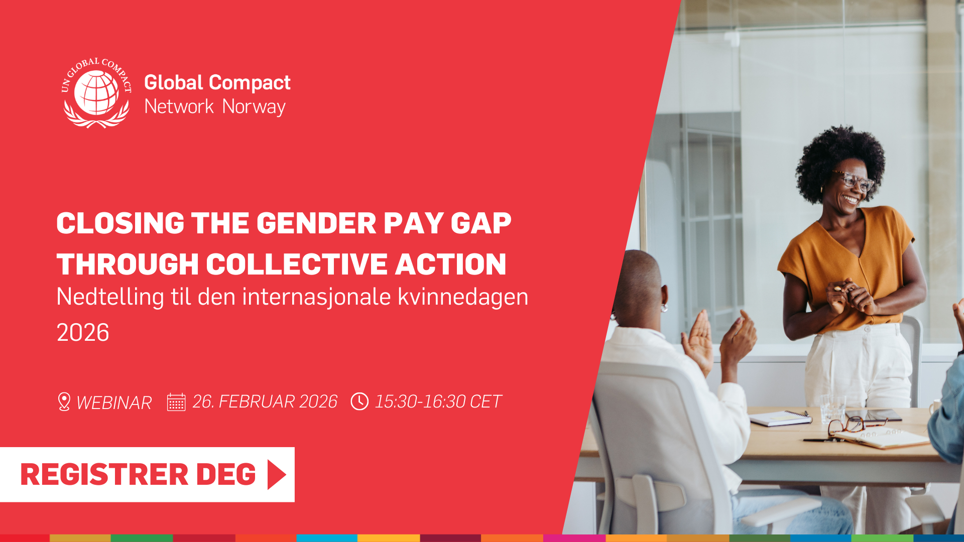 Arrangert av FNs Global Compact i samarbeid med ILO vil dette webinaret utforske hvordan lik lønn for arbeid av lik verdi fremmer likestilling, beskytter menneskerettigheter og styrker virksomheters resultater i drift og leverandørkjeder. Du får lære hvordan Forward Faster-initiativet støtter bedrifter i å forplikte seg til, følge opp og rapportere om lønnslikestilling, med praktiske verktøy, konkrete strategier og innsikt fra organisasjoner som leder an.